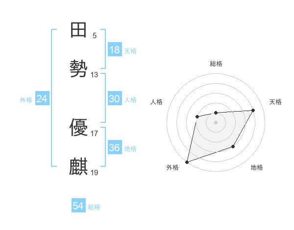 田勢 優麒さんを姓名の画数から五運を鑑定