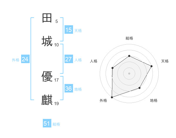 田城 優麒さんの総格は51画の3点!