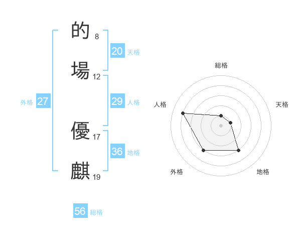 的場 優麒さんの天格は20画の1点!