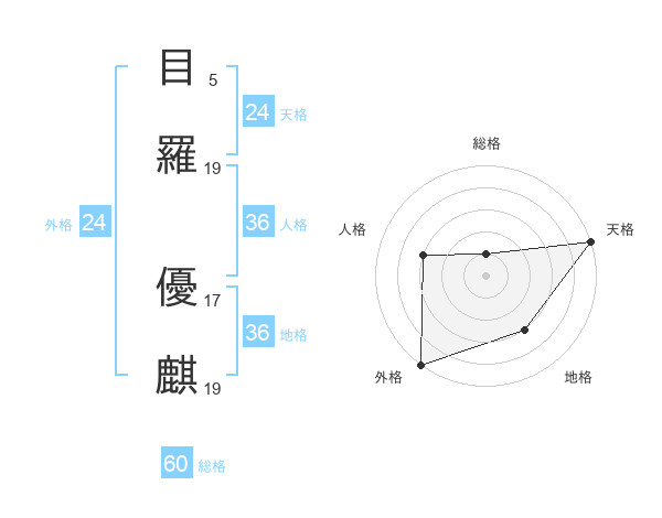 目羅 優麒さんの外格は24画の5点!