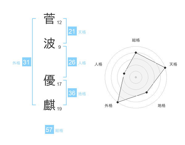 菅波 優麒さんの総格は57画の4点!