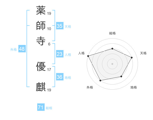 薬師寺 優麒さんの総格は71画の3点!