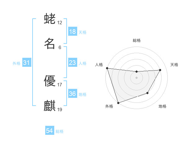 蛯名 優麒さんの総格は54画の1点!