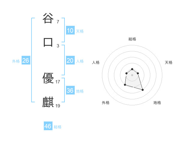 谷口 優麒さんの総格は46画の1点!