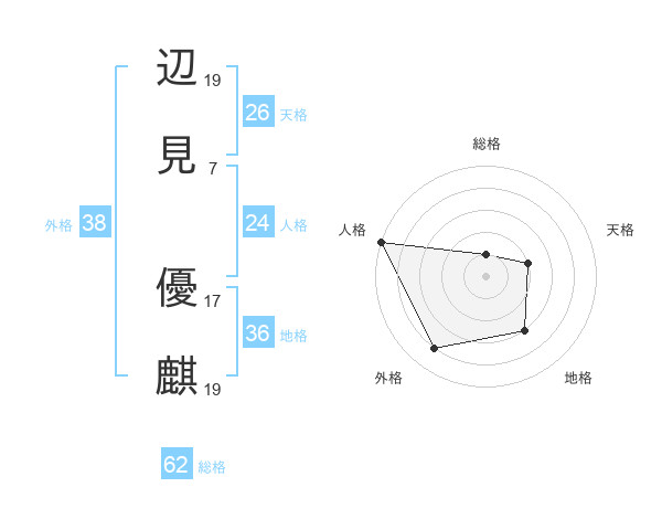 辺見 優麒さんの外格は38画の4点!