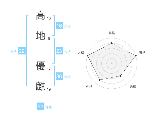 高地 優麒さんの総格は52画の4点!