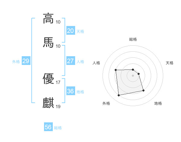 高馬 優麒さんを姓名の画数から五運を鑑定