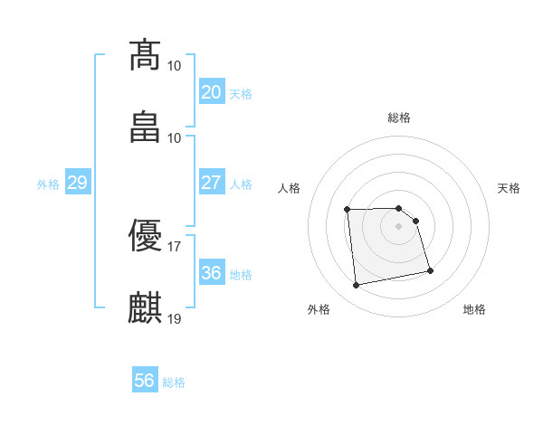 髙畠 優麒さんの総格は56画の1点!