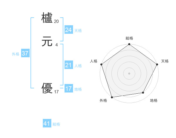 櫨元 優さんの総格は41画の5点!