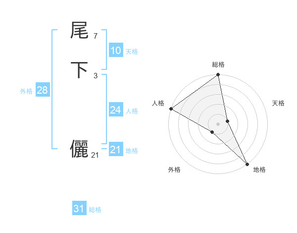 尾下 儷さんの総格は31画の5点!