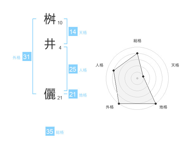 桝井 儷さんの総格は35画の4点!