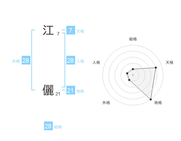 江 儷さんの総格は28画の1点!