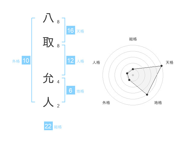 八取 允人さんの総格は22画の1点!