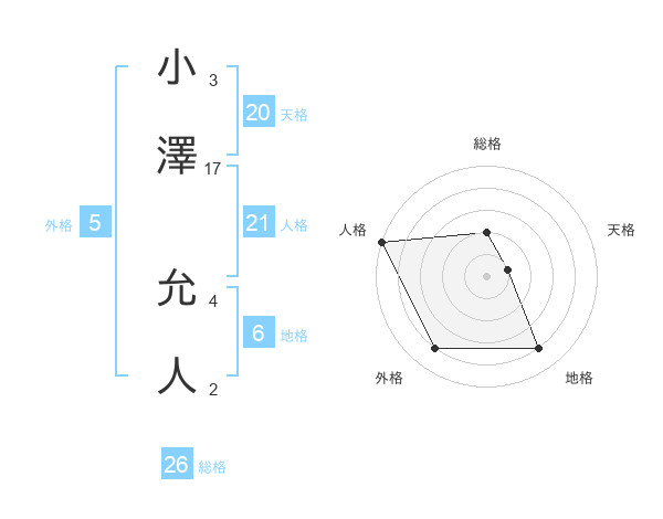 小澤 允人さんの総格は26画の2点!