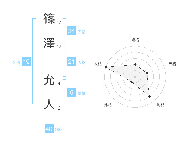 篠澤 允人さんの総格は40画の2点!