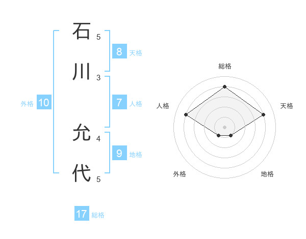 石川 允代さんの総格は17画の4点!