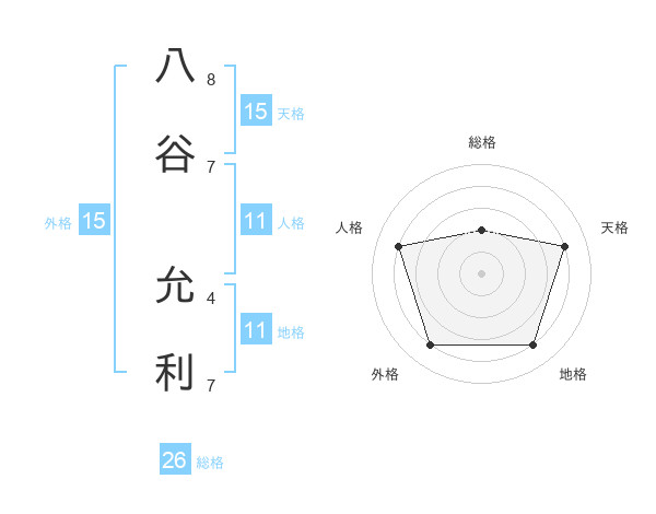 八谷 允利さんの天格は15画の4点!