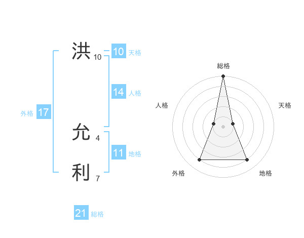 洪 允利さんの総格は21画の5点!