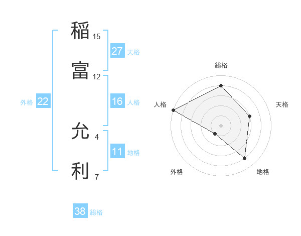稲富 允利さんの総格は38画の4点!