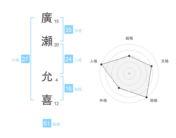廣瀬 允喜さんを姓名の画数から五運を鑑定