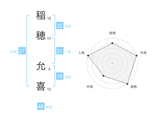 稲穂 允喜さんの天格は32画の5点!
