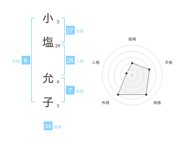 小塩 允子さんの総格は34画の2点!