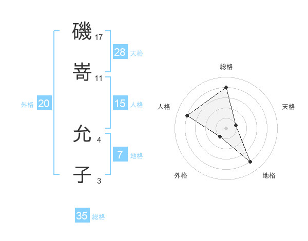 磯嵜 允子さんの総格は35画の4点!
