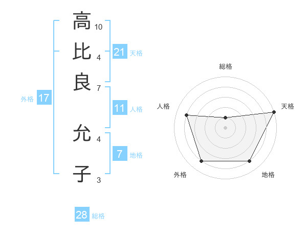 高比良 允子さんの天格は21画の5点!