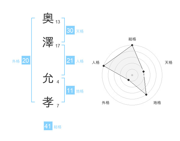 奥澤 允孝さんを姓名の画数から五運を鑑定