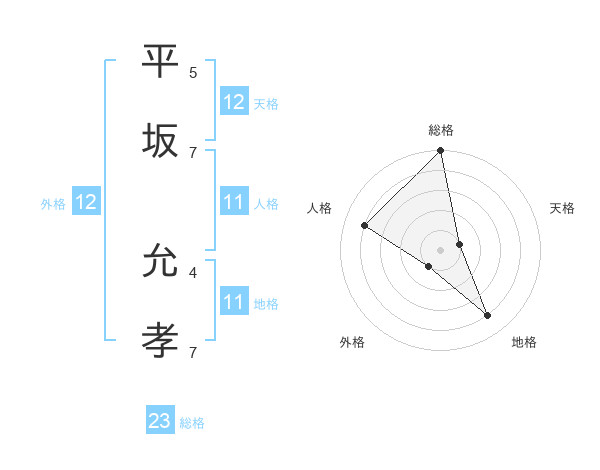 平坂 允孝さんを姓名の画数から五運を鑑定