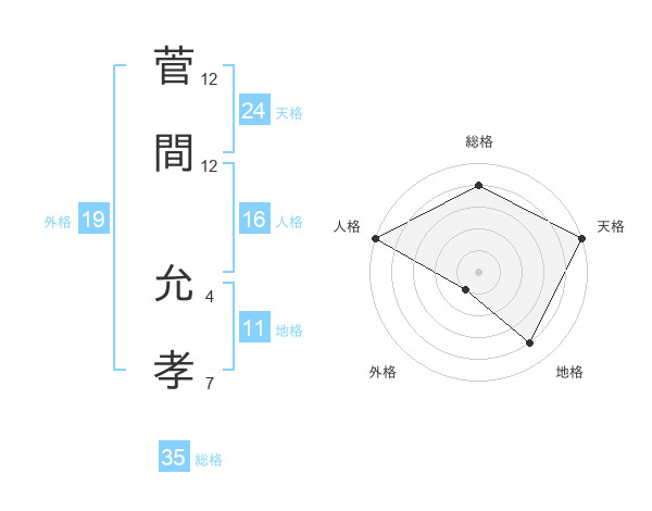菅間 允孝さんを姓名の画数から五運を鑑定