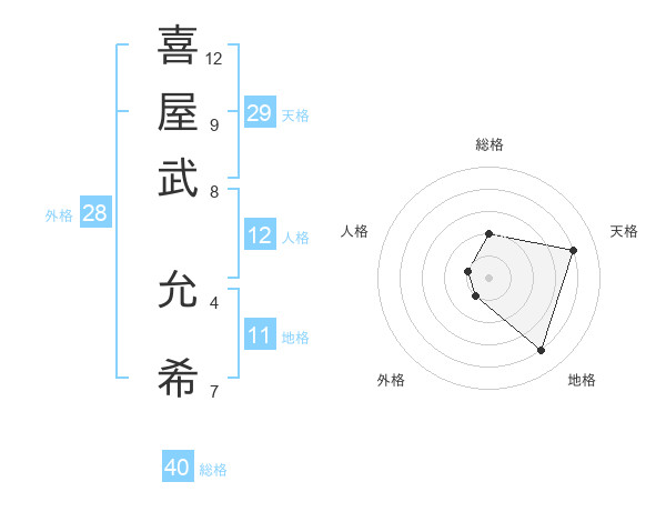 喜屋武 允希さんの天格は29画の4点!