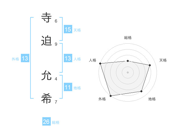 寺迫 允希さんを姓名の画数から五運を鑑定