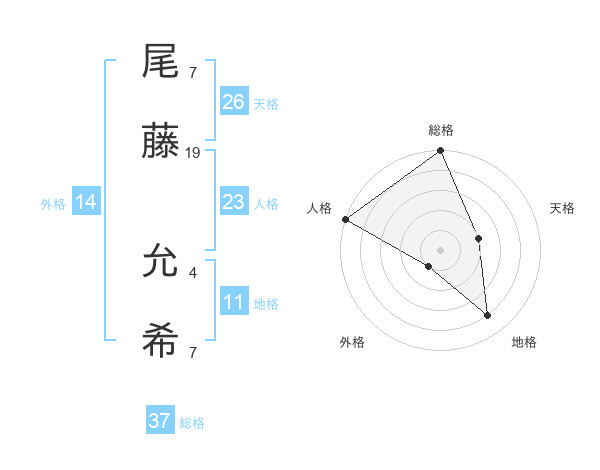 尾藤 允希さんの天格は26画の2点!