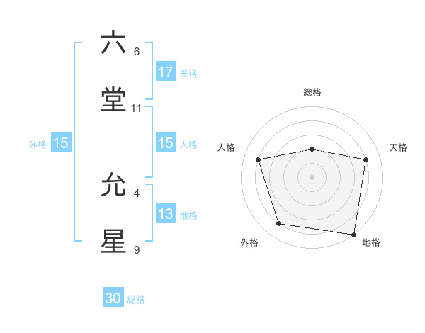 六堂 允星さんの総格は30画の2点!