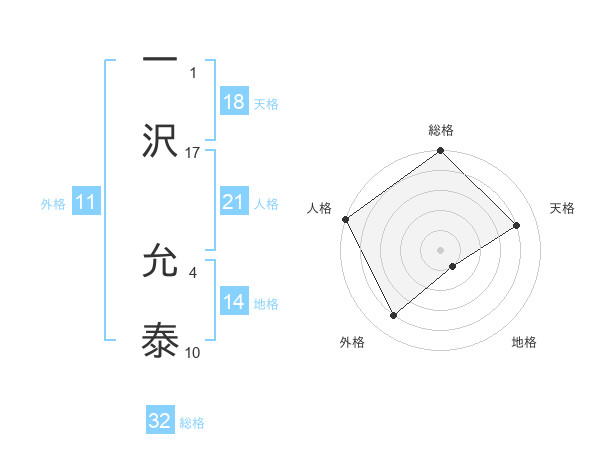 一沢 允泰さんを姓名の画数から五運を鑑定