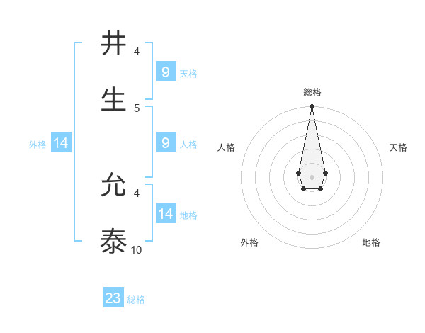 井生 允泰さんの総格は23画の5点!