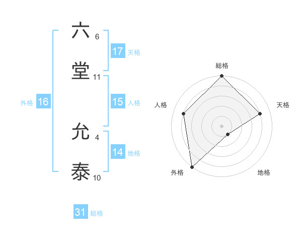 六堂 允泰さんの天格は17画の4点!
