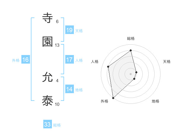 寺園 允泰さんの総格は33画の4点!
