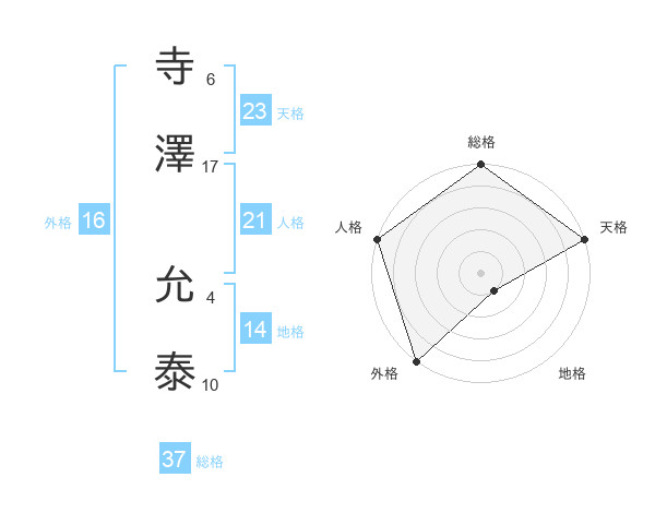 寺澤 允泰さんの総格は37画の5点!