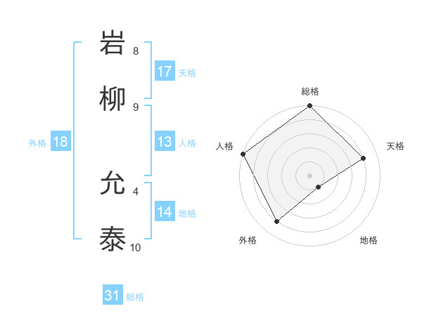 岩柳 允泰さんの総格は31画の5点!