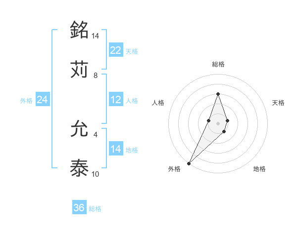 銘苅 允泰さんの外格は24画の5点!