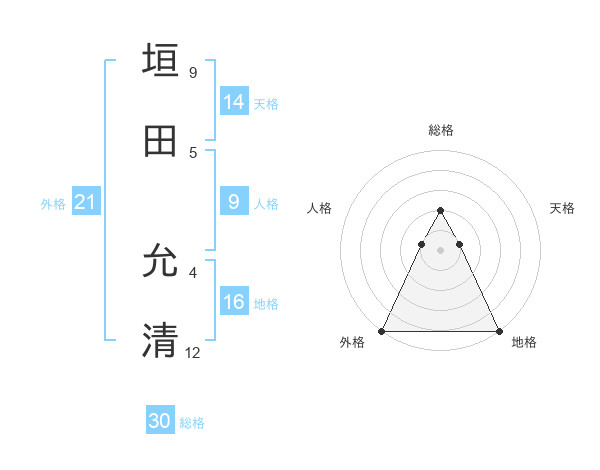 垣田 允清さんの外格は21画の5点!
