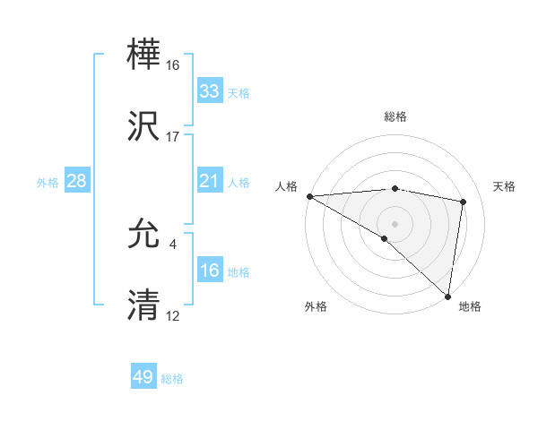 樺沢 允清さんを姓名の画数から五運を鑑定