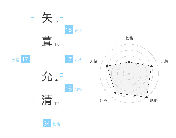矢葺 允清さんの総格は34画の2点!