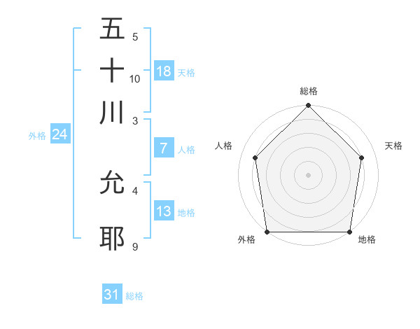 五十川 允耶さんを姓名の画数から五運を鑑定