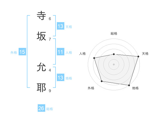 寺坂 允耶さんを姓名の画数から五運を鑑定