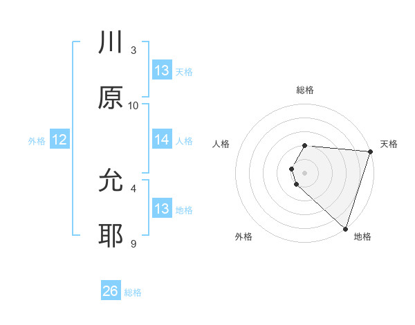 家系が持つ宿命的な運勢を表します。祖先から受け継いだ苗字ですので自分の力が及びません。家柄を象徴します。