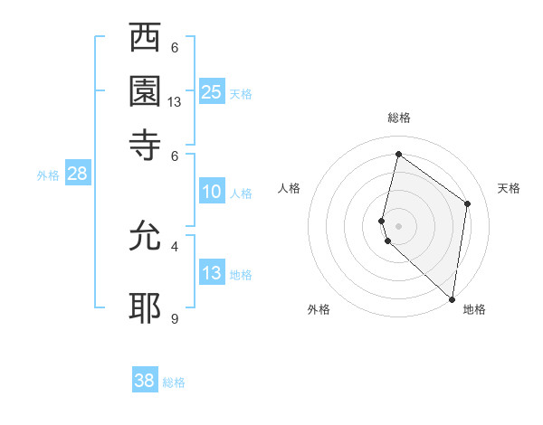 西園寺 允耶さんの総格は38画の4点!