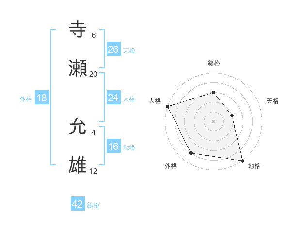 寺瀬 允雄さんの総格は42画の3点!
